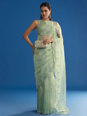 KALKI Fashion Embellished Embroidered Beads and Stones Tissue Saree