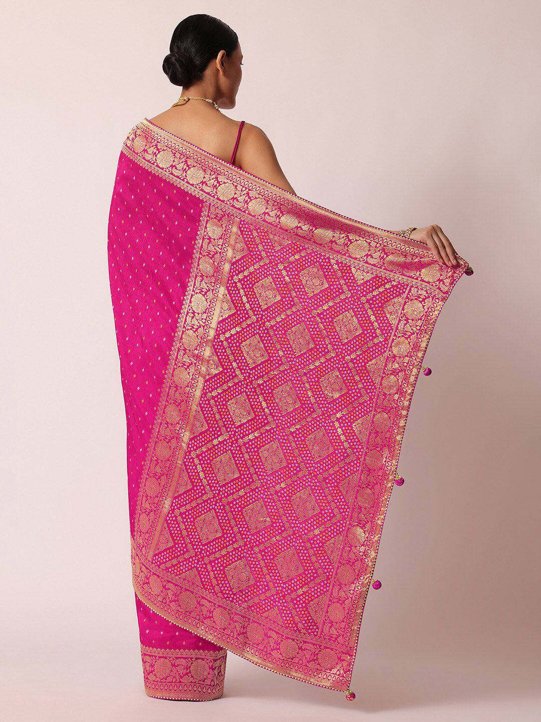 - Pink & gold-tone saree