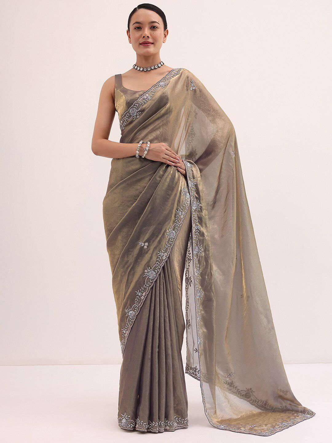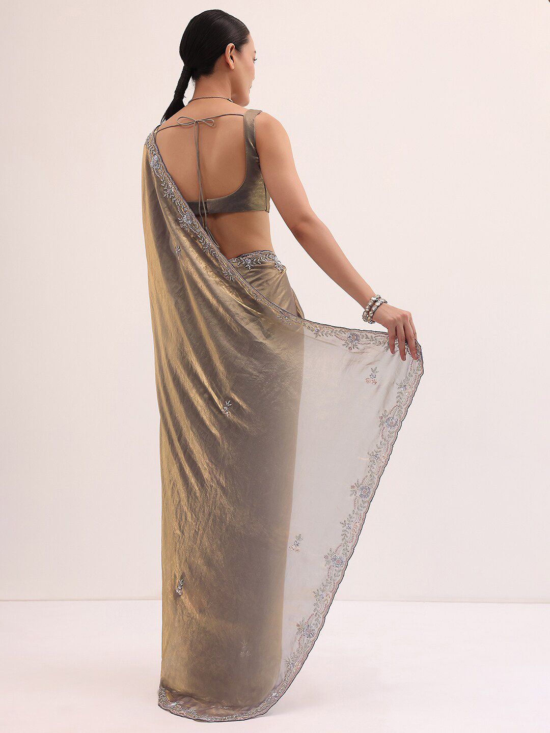 - Floral embroidered saree with embroidered border
