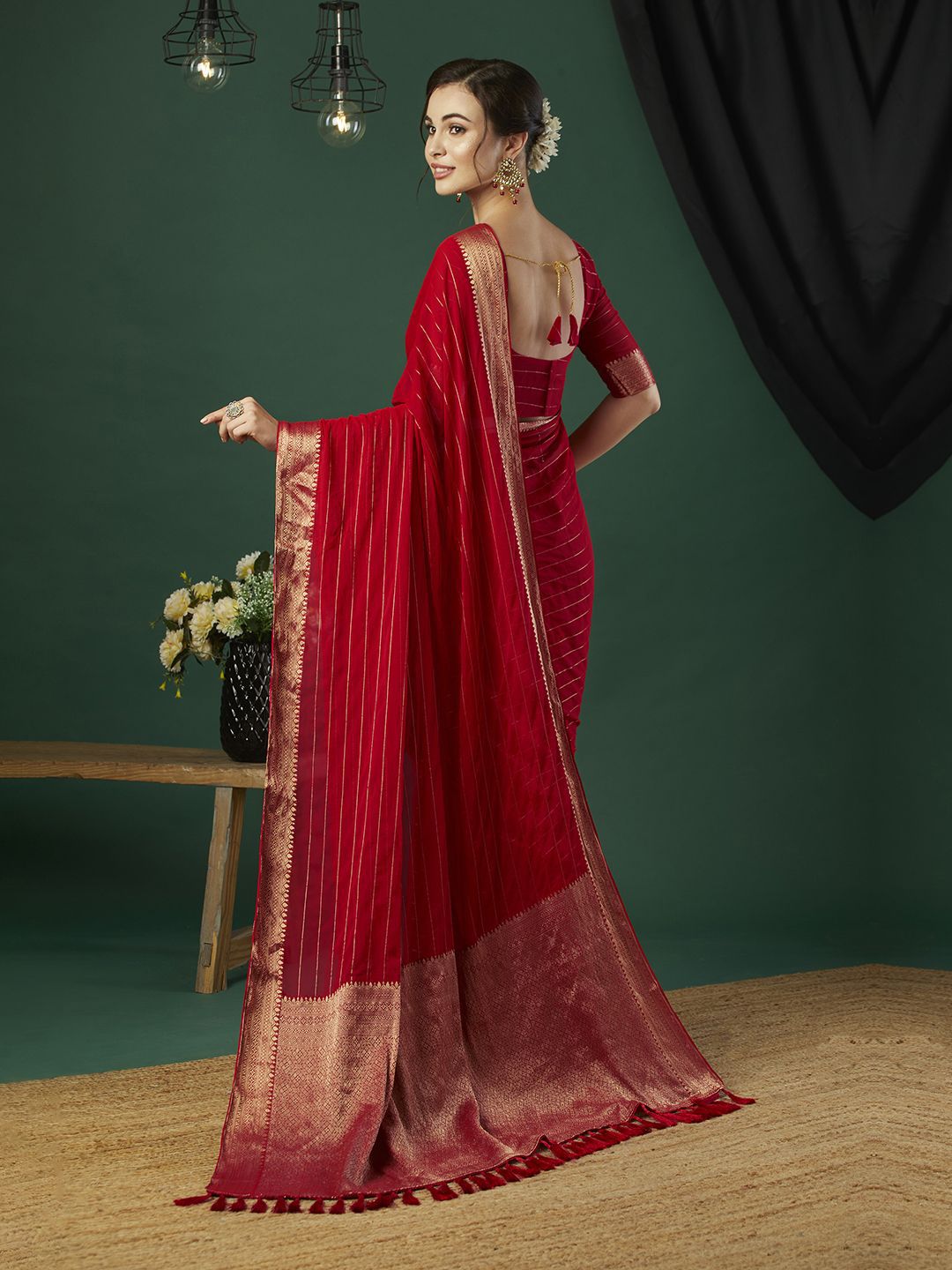 KAYOMMI Striped Zari Pure Chiffon Saree